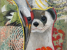 Racoon Balloon 11 X 11” acrylic on hardwood panel inc. recycled frame